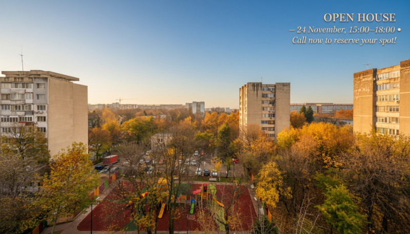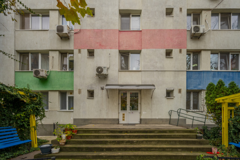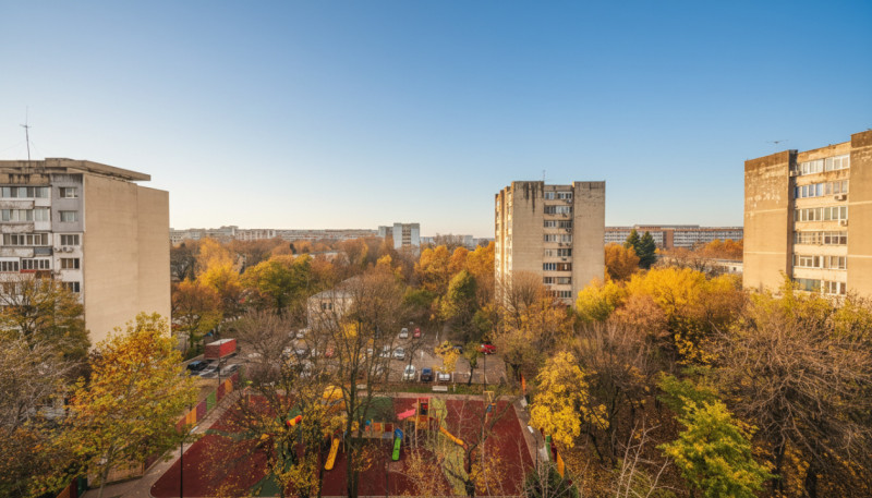 Și când ridici privirea, vezi blocul turn, solid, construit în 1968… un bloc cu structură matură, stabilă, testată de timp.