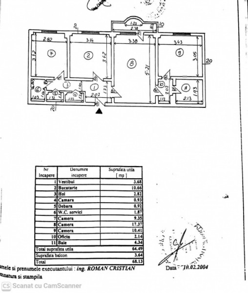* Suprafață utilă: **64,49 mp** + balcon de **3,64 mp** – total **68,13 mp**
